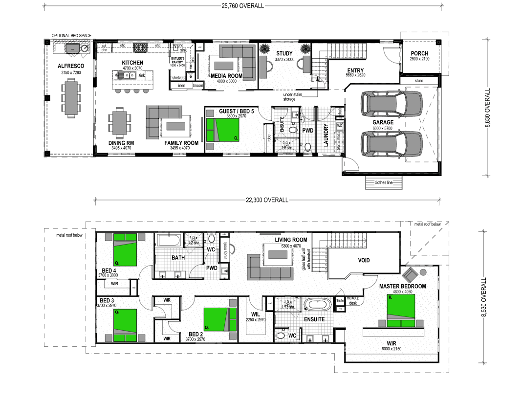 Designed for large families who appreciate both elegance and practicality, the Cityview 364 offers five bedrooms and three bathrooms across a spacious layout. The ground floor includes a private guest bedroom with ensuite, perfect for guests or multigenerational living. A dedicated study and media room provide ideal spaces for work and entertainment, while the gourmet kitchen with a butler’s pantry seamlessly connects to open-plan family and dining areas, creating the heart of the home and capturing breathtaking views.